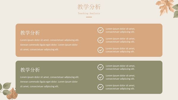 老师可以通过制作并展示美观的课件来更好地对学生们进行授课,一份好的课件内容能够更加吸引学生的注意力,下面小编就为大家分享这款小清新秋日物语教学通用PPT模板软件,通过这个模板用户能轻松打造出优秀出色的教学课件,模板的设计是小清新风格的,让人看起来感觉很舒适。