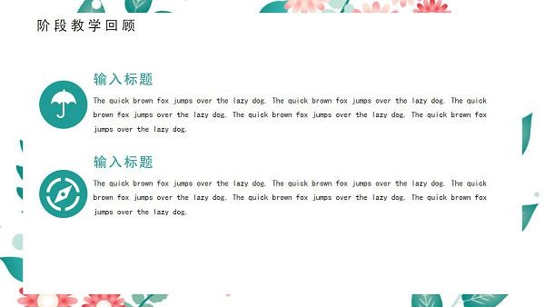 在教学过程中需要制定教学计划或者课件可以试试小编带来的这款清新简约花卉教学PPT模板软件,这是一个专门为广大教师朋友们打造的模板工具,能够帮助用户轻松制作出优秀的PPT演示文档,从而更好地展示在课堂中,模板是小清新的设计风格,带有花卉元素,让人看到觉得很舒适。