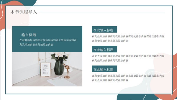 简约校园教师教学通用PPT模板很适合老师开展课堂教学时使用,可以帮助用户轻松制作出教学所需的课件,模板的风格看起来很舒适,上面带有简单的色块图案,能够很好地吸引学生们的目光和兴趣,让课件展示得更加有效,格式为PPT文档,页面清晰直观,内容丰富,便于用户直接修改。