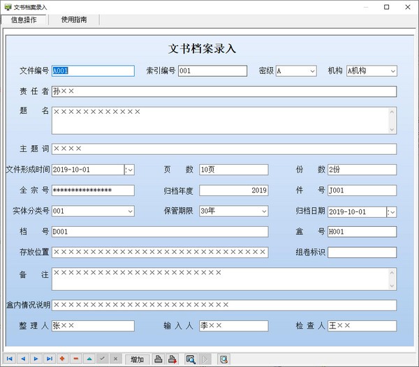 1、基本信息(密级、机构、实体分类号、保管期限);