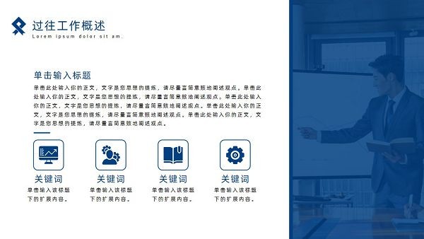 大气蓝色简约商务汇报PPT模板为企业员工制作工作总结提供了许多便利,这是非常多的人都在使用人用的一款非常非常实用的PPT演示稳定模板,一共包含了四个板块,内容完善规范,设计风格十分简洁大气,很适合用来制作商务工作汇报,从而更好地展示自己的项目完成情况,并展开未来的工作计划,免费提供。