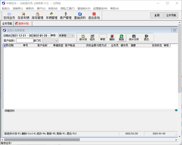 维修管理:维修接待,派工,结算,交车,维修预约,维修估价,车间订购单,维修日报月报,维修工计提等。
