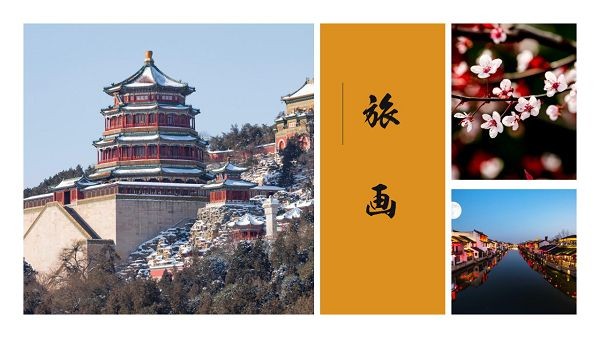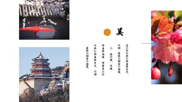风格古典雅致,融入了多张自然风景照片