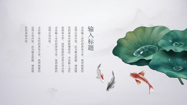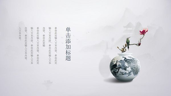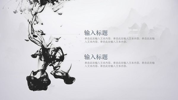 软件以水墨画为题材,打造了一个看起来美观又舒适的PPT文档模板,用户可以根据需求在文档中编辑内容,支持免费下载和修改,模板中的元素丰富,典雅大气。