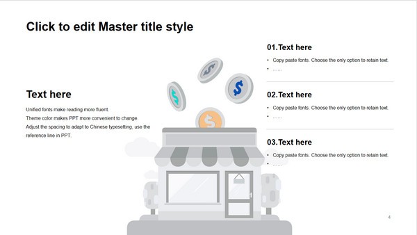 该PPT模板分5个部分,每个部分都包含丰富的逻辑图示素材、图表素材、版式和素材,非常丰满而非常实用。