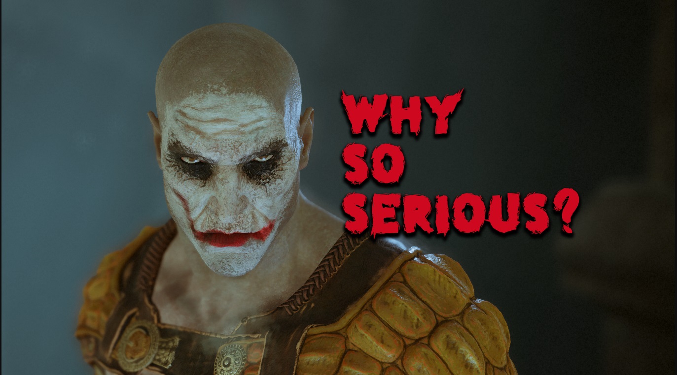 战神4奎托斯小丑面部妆容MOD,这是给游戏中的战神奎托斯角色制作的一个面部美化类补丁,使用后会把它的脸变成小丑的妆容,具体效果可以参考下文图示,经典的"Why so Serious"嘴巴,看起来更加神秘可怕,喜欢的玩家们可以下载进游戏给奎托斯换上哦~
