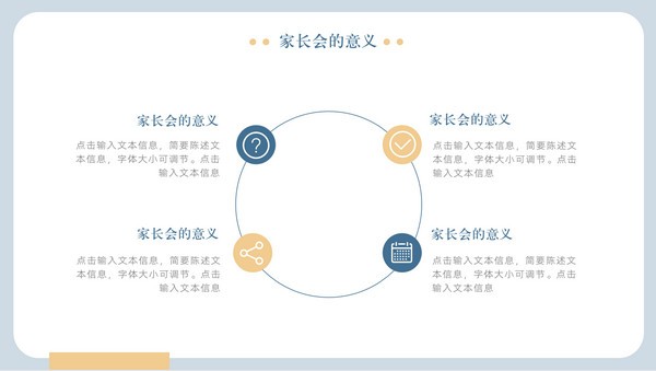 软件中包含了多个板块,内容清晰有条理,可以帮助用户制作出丰富出色的班会家长会演示课件,非常方便在课堂上为大家更好地展示,格式为PPT文档,免费下载即可使用。