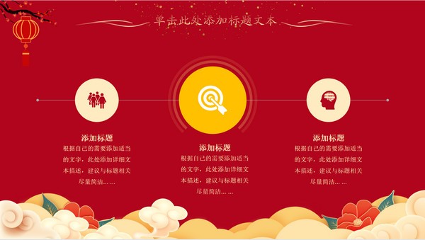 中国红喜庆风新年工作计划ppt模板可以用来制作新年的PPT,里面的内容都是可以自由修改的,喜欢的朋友们可以直接下载套用~