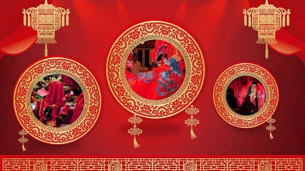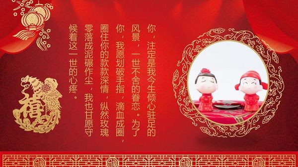 软件中包含了许多大红色的图片元素,文字样式也很符合中国古代的传统风格,适用于中式风格的婚礼庆典,用户可以免费下载并替换图片,制作属于自己的婚礼幻灯片。