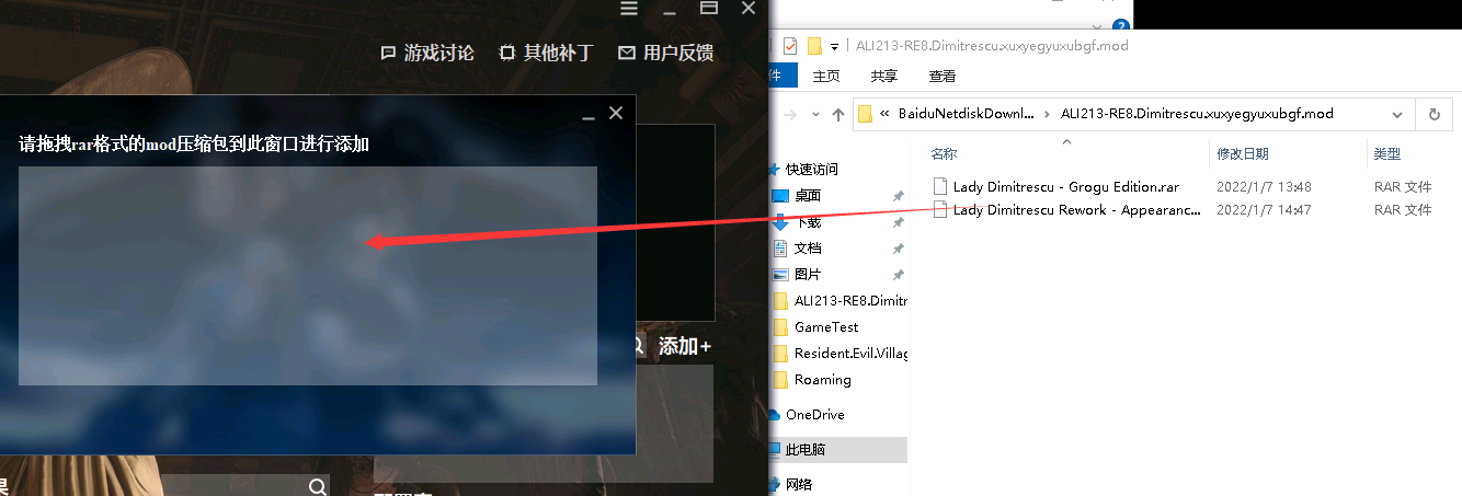 1、把所有本体和魔改RAR压缩包添加到本地窗口,注意压缩包格式。