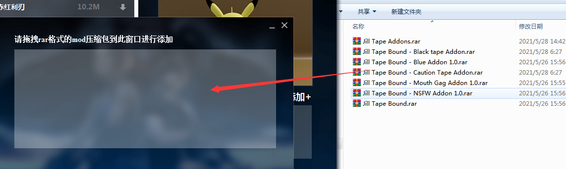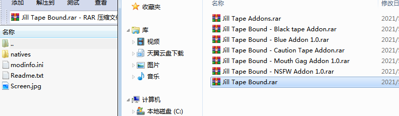 1、把所有本体和魔改RAR压缩包添加到本地,注意格式。