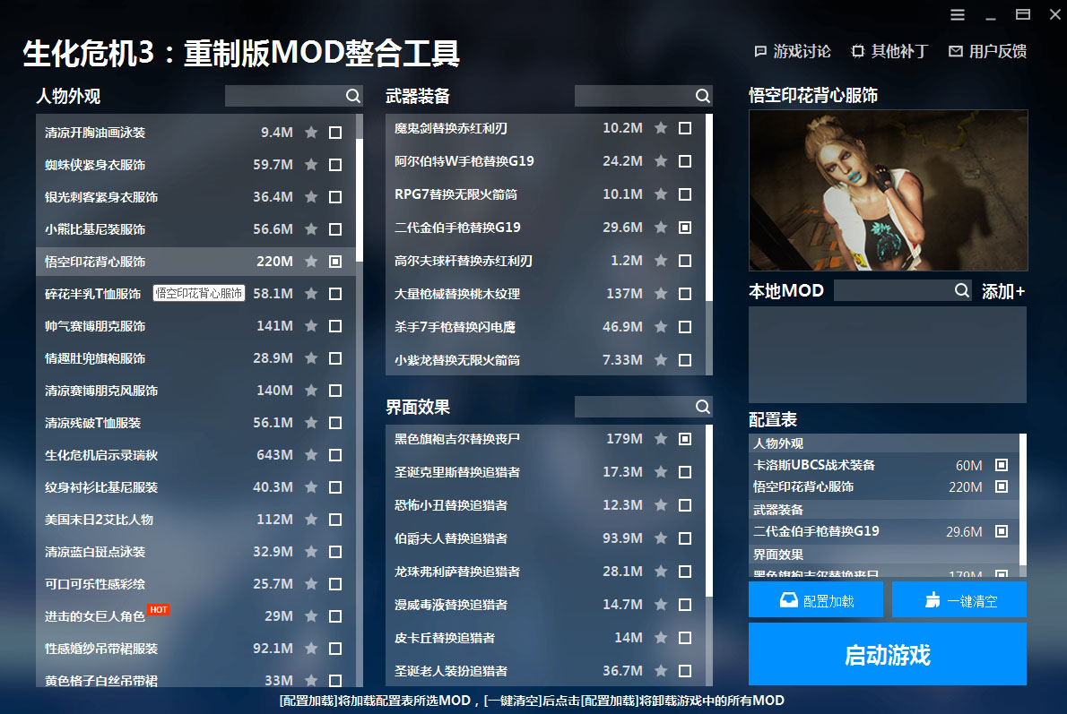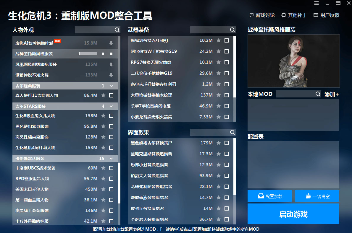 生化危机3重制版MOD整合版工具下载v2022.02.09,修复了启动游戏闪退bug,添加mod整合包功能等等,使用后就能可以让广大玩家一键快速安装、配置、卸载生化危机3mod,小白用户也能用,非常非常方便快捷。