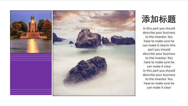 介绍旅游景点可以使用这个“旅行旅游景点图文介绍PPT模板”,图文并茂,排版美观,只要替换图片并加以描述即可,喜欢的话可以自取。