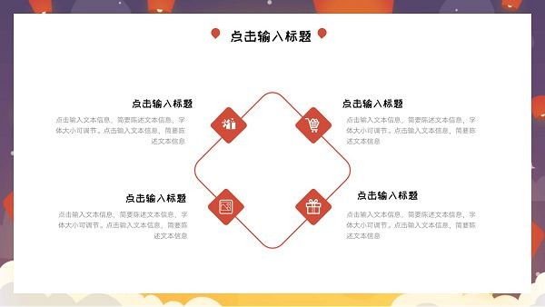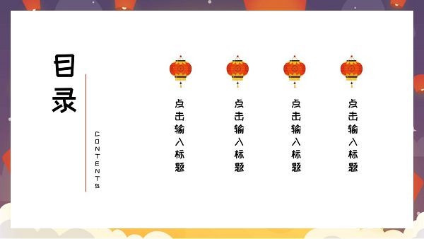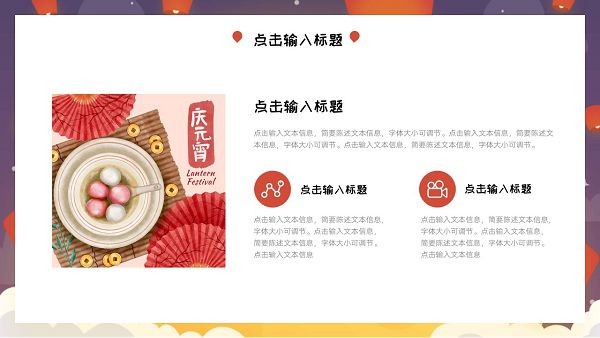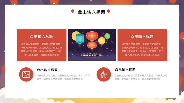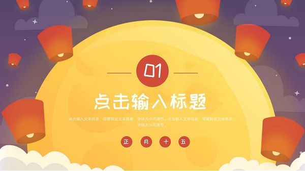 版权声明:元宵节节日主题PPT模板所展示的资源内容均来自于第三方用户上传分享,您所下载的资源内容仅供个人学习交流使用,严禁用于商业用途,软件的著作权归原作者所有,如果有侵犯您的权利,请来信告知,我们将及时撤销。
