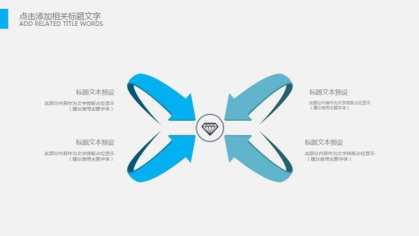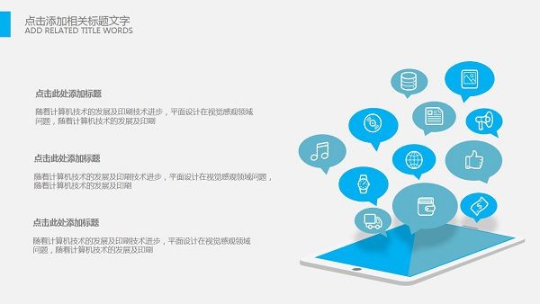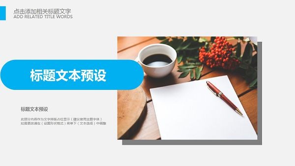 PowerPoint模板内容页,由23张蓝色动态幻灯片图表,搭配PPT文字排版。另外使用了办公桌面插图、记事本插图、鲜花插图、城市建筑插图等装饰。