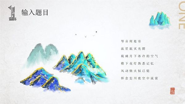 软件能够应用在许多场景中,不管是用来制作商务工作汇报还是课件都很非常实用,整体色调为蓝绿色,看起来舒适宜人,其中中国山水的素材精致高清,下载之后可以直接修改编辑。