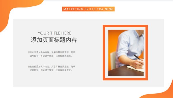 从事销售行业的朋友们刚入职时一般都需要对工作内容进行培训,想要更好地培训员工可以使用小编带来的这款橙色几何渐变销售技巧培训PPT模板软件进行制作,这是一个界面简洁的模板工具,很适合用来制作销售技巧培训的幻灯片,让用户更好地开展新人培训,格式为PPT演示文档。