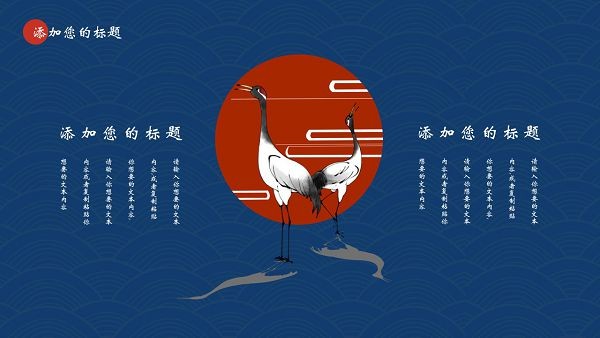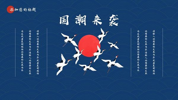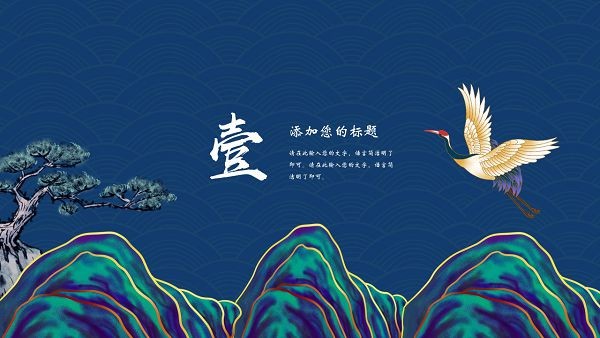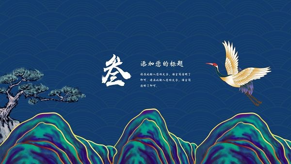采用国潮元素,包括山水,松树,仙鹤,古人等