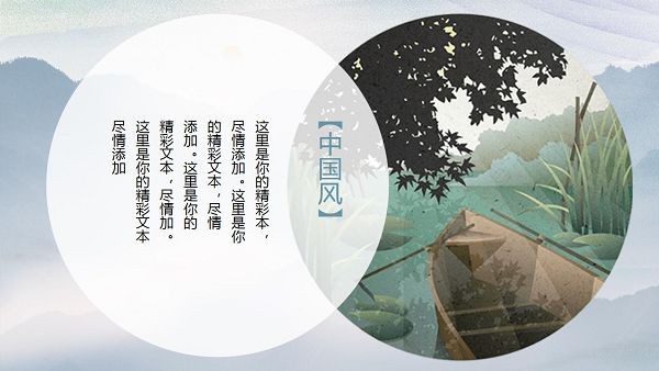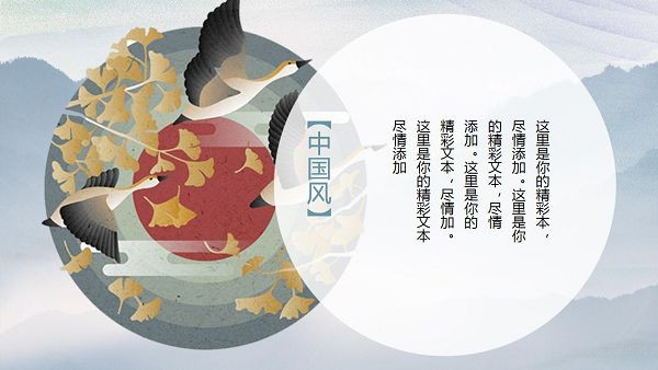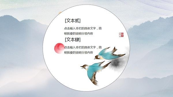 PowerPoint模板内容页,由花鸟插图、古建筑插图、山水插图等搭配PPT文字排版。