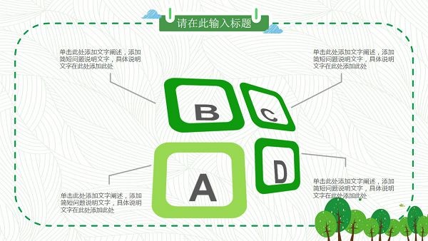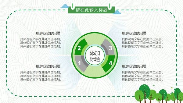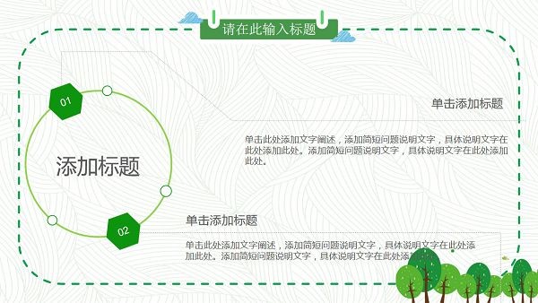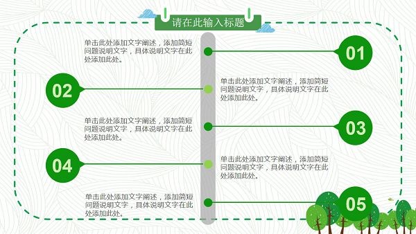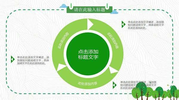 PowerPoint模板内容页,由绿色虚线边框装饰。幻灯片图表为25张绿色动态扁平化PPT图表。