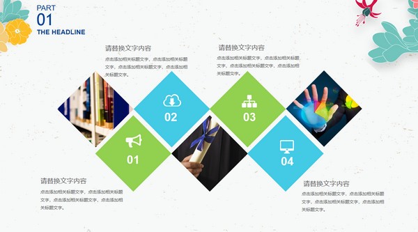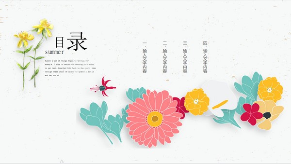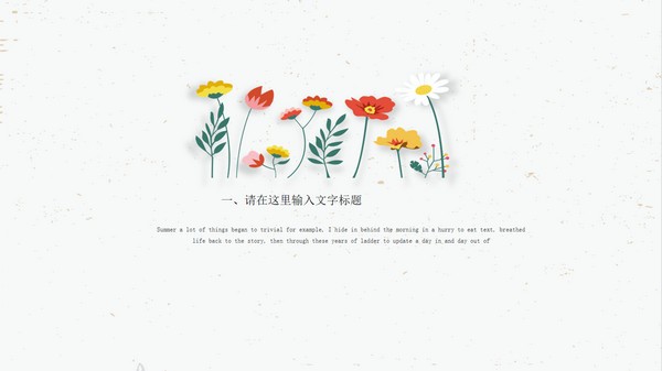 小清新插画风小花PPT模板。一套非常好看的幻灯片模板,插画风小花装饰,简约清新,动态效果。建议安装字体:TypeLand 康熙字典體試用版、华文中宋。