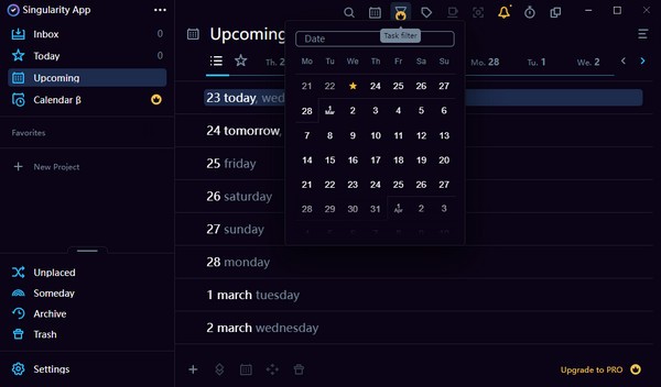 POMODORO:你可以在SingularityApp中直接安排任务并完成它们。为了在更短的时间内完成更多的工作,把你的工作分成25分钟的时间间隔,并有短暂的休息。