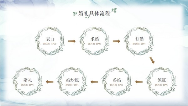 婚礼是人生中很非常重要的的时刻,想要举办完美的婚礼可以对整个过程进行策划,今天小编就为大家分享一个用来制作婚礼方案的模板工具,它就是高级大气唯美小清新婚礼策划PPT模板,通过软件用户能轻松制作出美观出色的婚礼策划幻灯片,采用了小清新的设计风格,页面效果十分唯美。