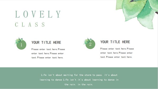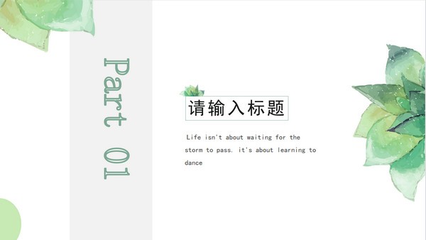 小清新水彩盆景植物背景PPT模板是非常多的人都在使用人用的一款设计风格清新自然的模板工具,能够帮助用户制作出美观的ppt演示文档,这款模板中包含了许多植物相关的素材,整体色调为绿色,让人觉得很舒适,能够用来制作不同类型的幻灯片,文字排版整齐美观,一共包含了25张,支持免费下载编辑。