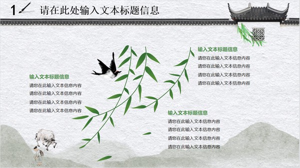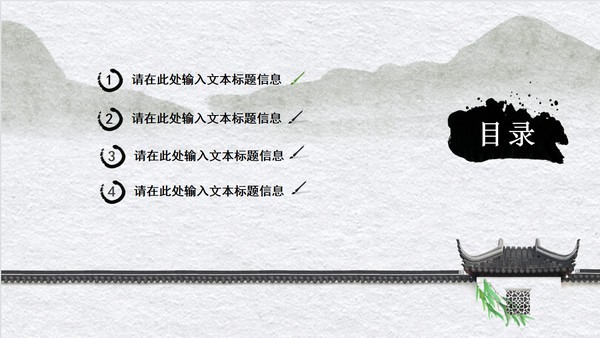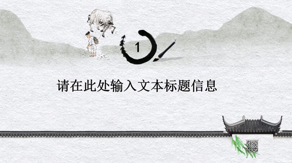 简约中国风传统佳节清明节ppt模板,本模板共26P,水墨山川淡雅灰杂点质感背景,古典庭院屋檐、牧童、柳条、清明毛笔字创意设计封面、目录页、过渡页,简约中国风排版,绿灰配色,扁平化图表,适合清明节来历课件场景应用的中国风ppt模板。