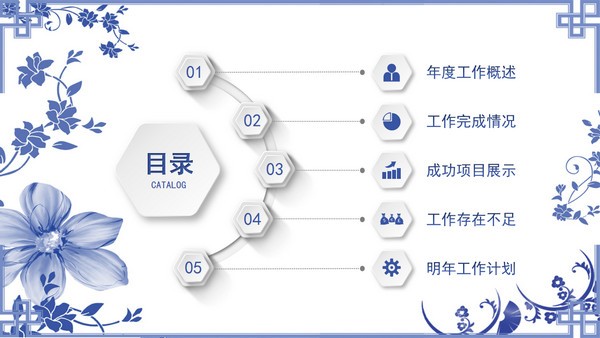 PPT是我们日常工作和学习中经常需要用到的工具,很适合用来展示自己的文档内容,想要制作出美观的PPT演示文档可以使用小编带来的这款蓝色青花风古典花卉背景PPT模板软件,这是一个非常实用又漂亮的ppt模板,能够用来制作工作汇报或者课件,古典的设计风格让幻灯片效果更好。