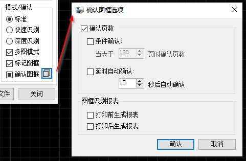 若要总是确认图框则可点“确认图框”后的按钮,不勾选“条件确认”,只勾选“确认页数”: