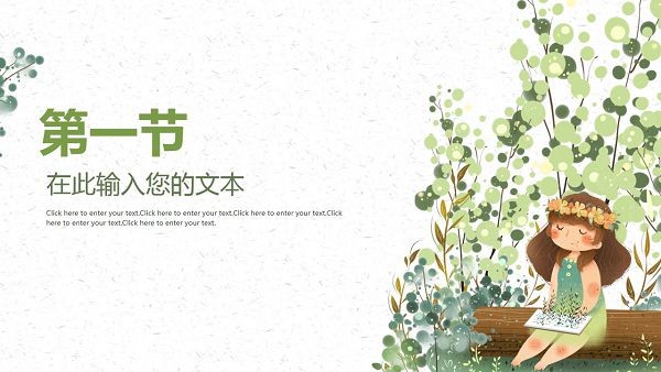 简洁绿色水彩卡通可爱女孩PPT模板,共26页;