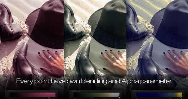 插件通过使用灰度源图像映射渐变来创建多种颜色之间的渐变混合。