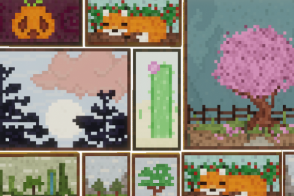 我的世界1.16画作家具包MOD能够为我的世界的玩家们带来全新的装饰物品,补丁的作者在游戏中制作添加了一系列装饰家具,这些家具都是带有画作图案的类型,上面的内容丰富多样,一共包含了三十三种不同的画作外观,让玩家拥有更多的家具装饰选择,用它们来装扮自己的房间。