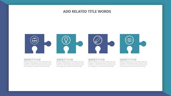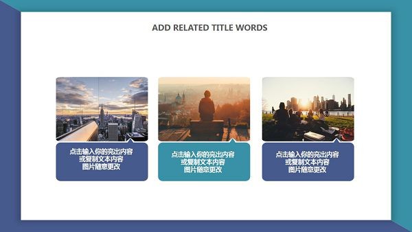 PowerPoint模板内容页,由23张蓝色动态幻灯片图表,搭配PPT文字排版。另外使用了自然风景插图、商业建筑插图、职场人物插图等装饰。