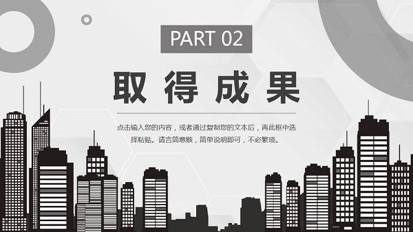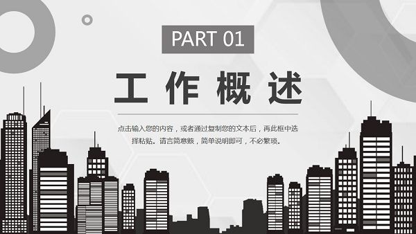 城市剪影员工转正述职报告PPT模板很适合在企业的员工从实习期专为正式员工时使用,一般情况下转正都需要对自己的工作内容进行总结和汇报,通过这款模板工具用户可以轻松制作出优秀的述职报告,展示自己的工作完成情况,模板整体色调为灰色,看起来简约大气,免费即可下载。
