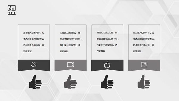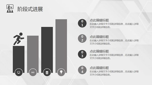 PowerPoint模板内容页,由27张黑灰配色的幻灯片图表,搭配PPT文字排版。