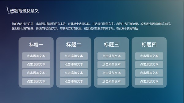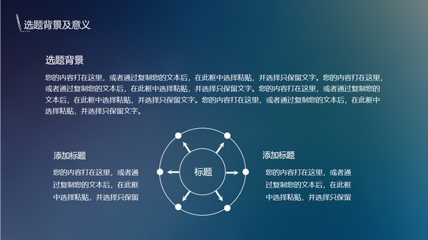 极致清新风论文答辩PPT模板采用了极致清新的设计风格,青墨色的风格能够凸显出论文的专业、严肃、严谨等特性,也能给众多答辩导师留下较深的印象,增加论文答辩通过的几率。