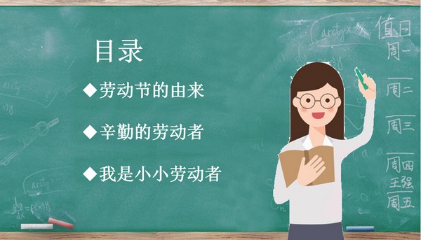 五一劳动节是国际纪念日,在这一天会有非常多的人都在使用主题活动,ppt是一种很常见的形式,非常适合来展现其深刻的历史背景及意义,黑板风五一劳动节主题班会ppt模板专为此主题定制,自动生成了相关的知识内容以及模版框架,界面风格很适合这类历史知识普及的场景,形象生动。